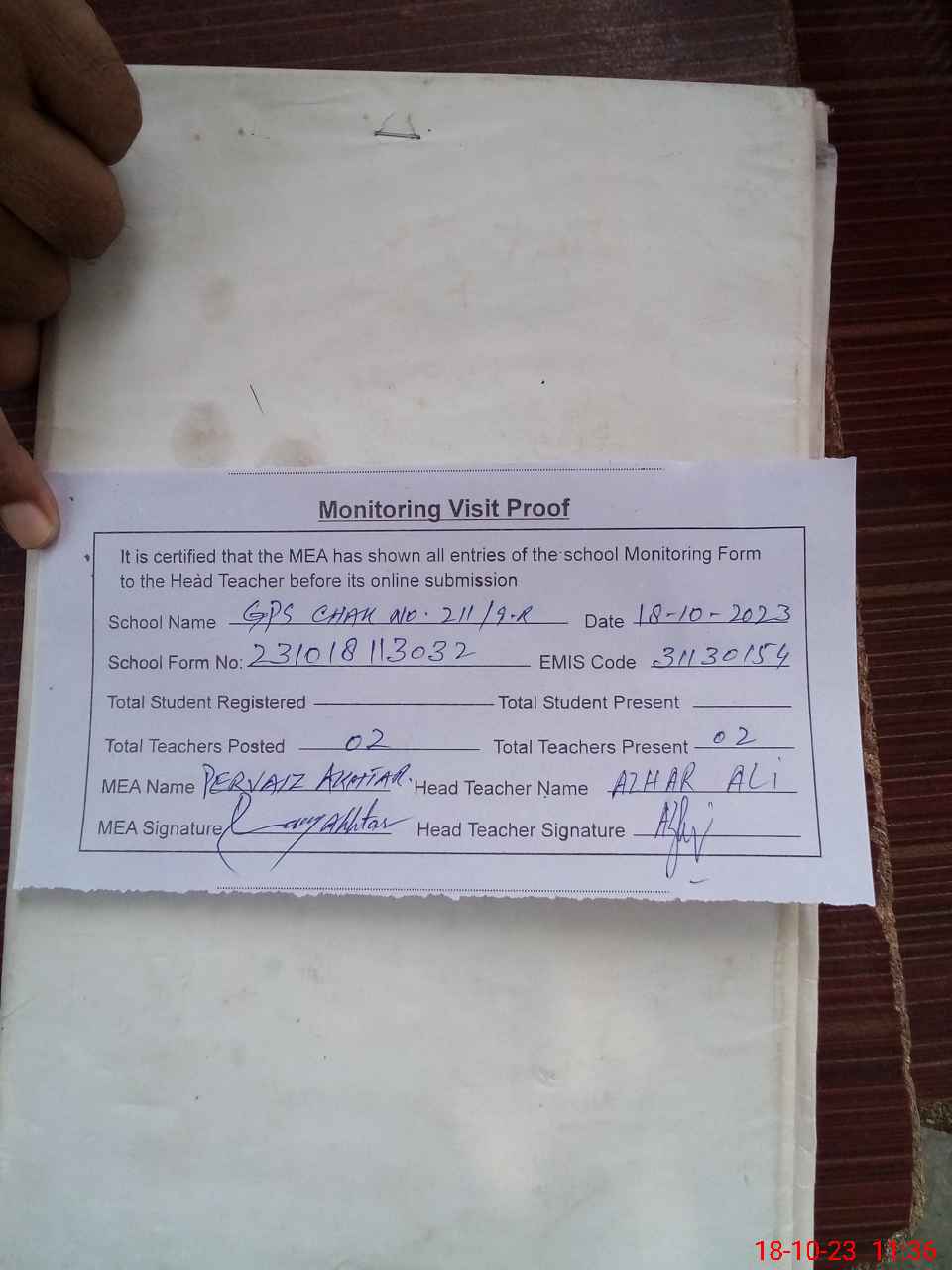 | EMIS Code: 31130154 | Name of School: GPS CHAK NO.211/9-R | |||