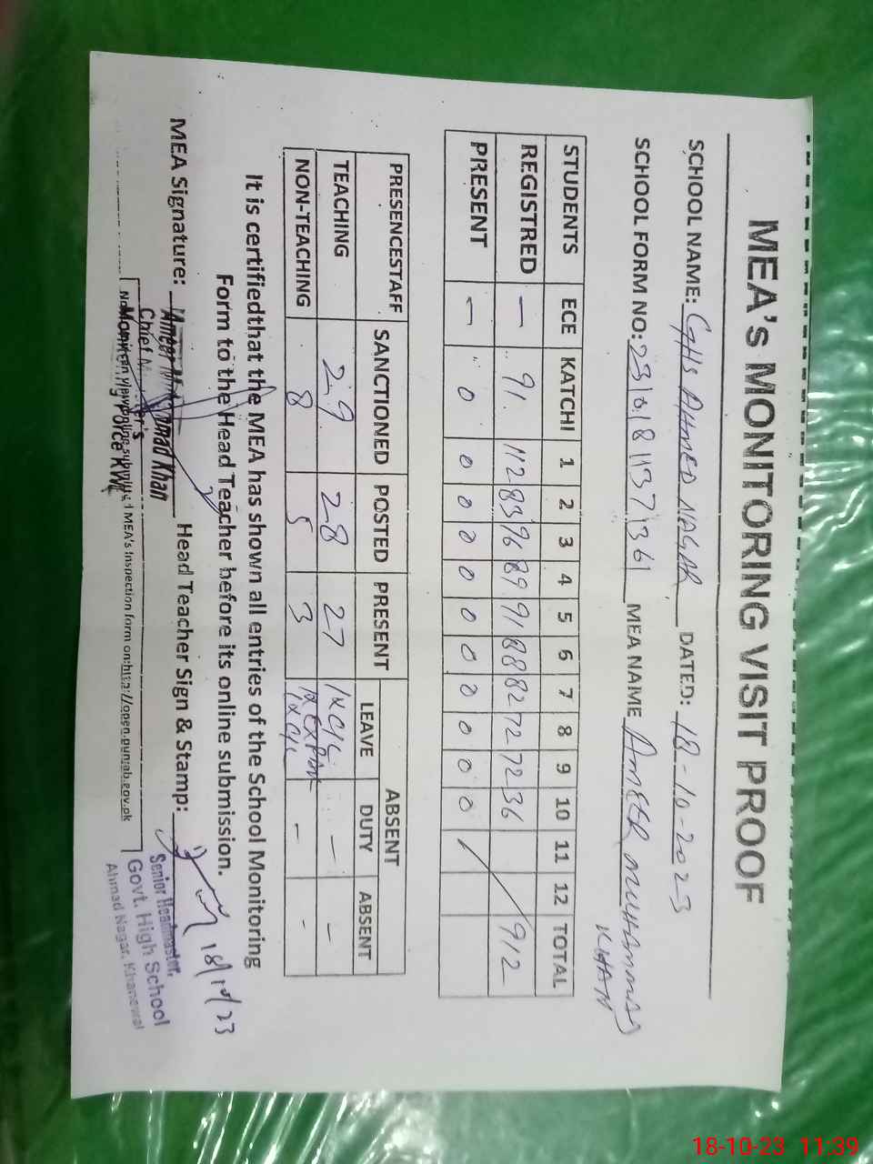 | EMIS Code: 36420014 | Name of School: GHS AHMAD NAGAR, KHANEWAL | |||