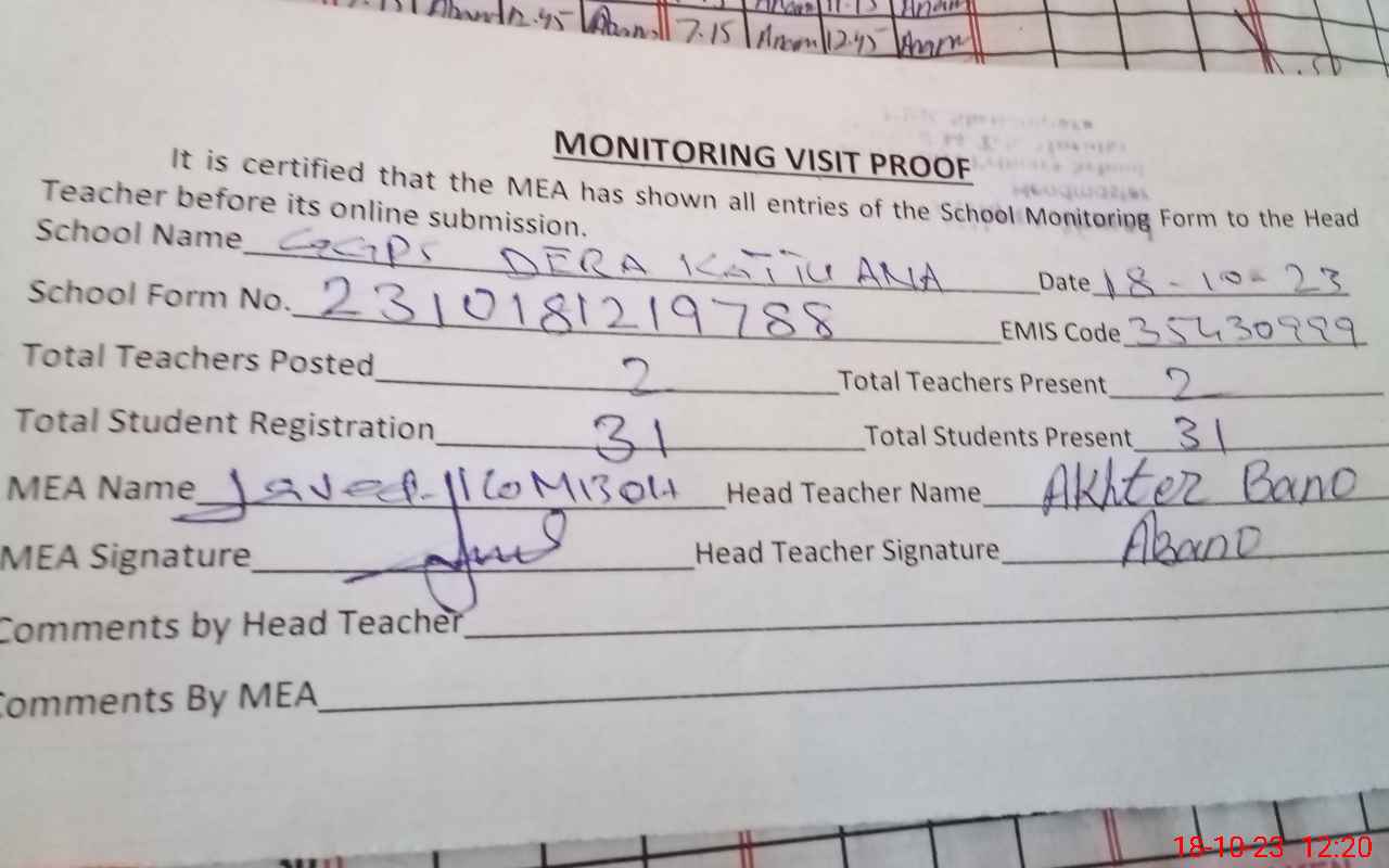 | EMIS Code: 35430999 | Name of School: GGPS DERA KATTU ANA | |||