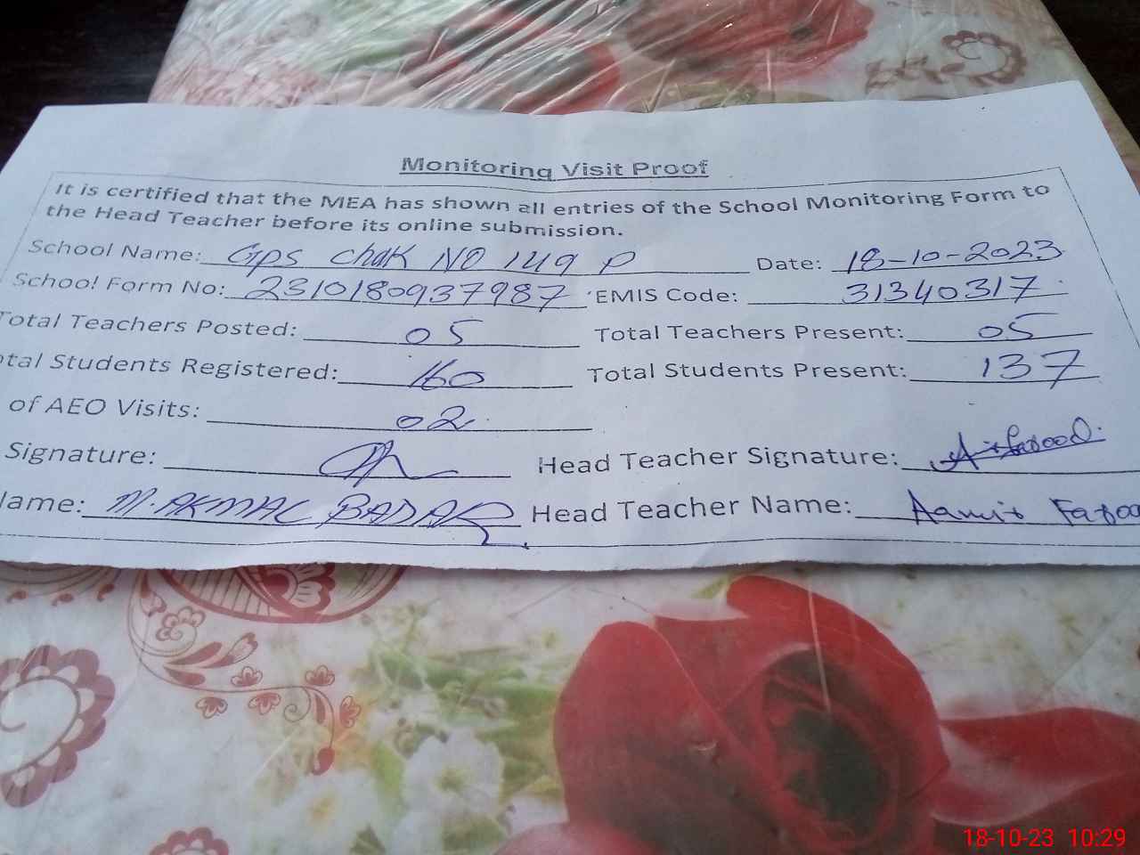 | EMIS Code: 31340317 | Name of School: GPS CHAK 149/P | |||