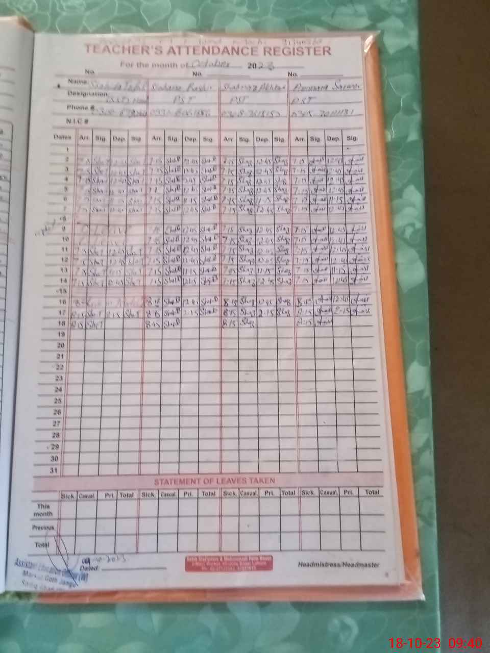 | Name: SH**** TU**** Designation: (School Headmaster's/Headmistress's) S.S.T.(SC) Phone/Cell Number: 03**** |