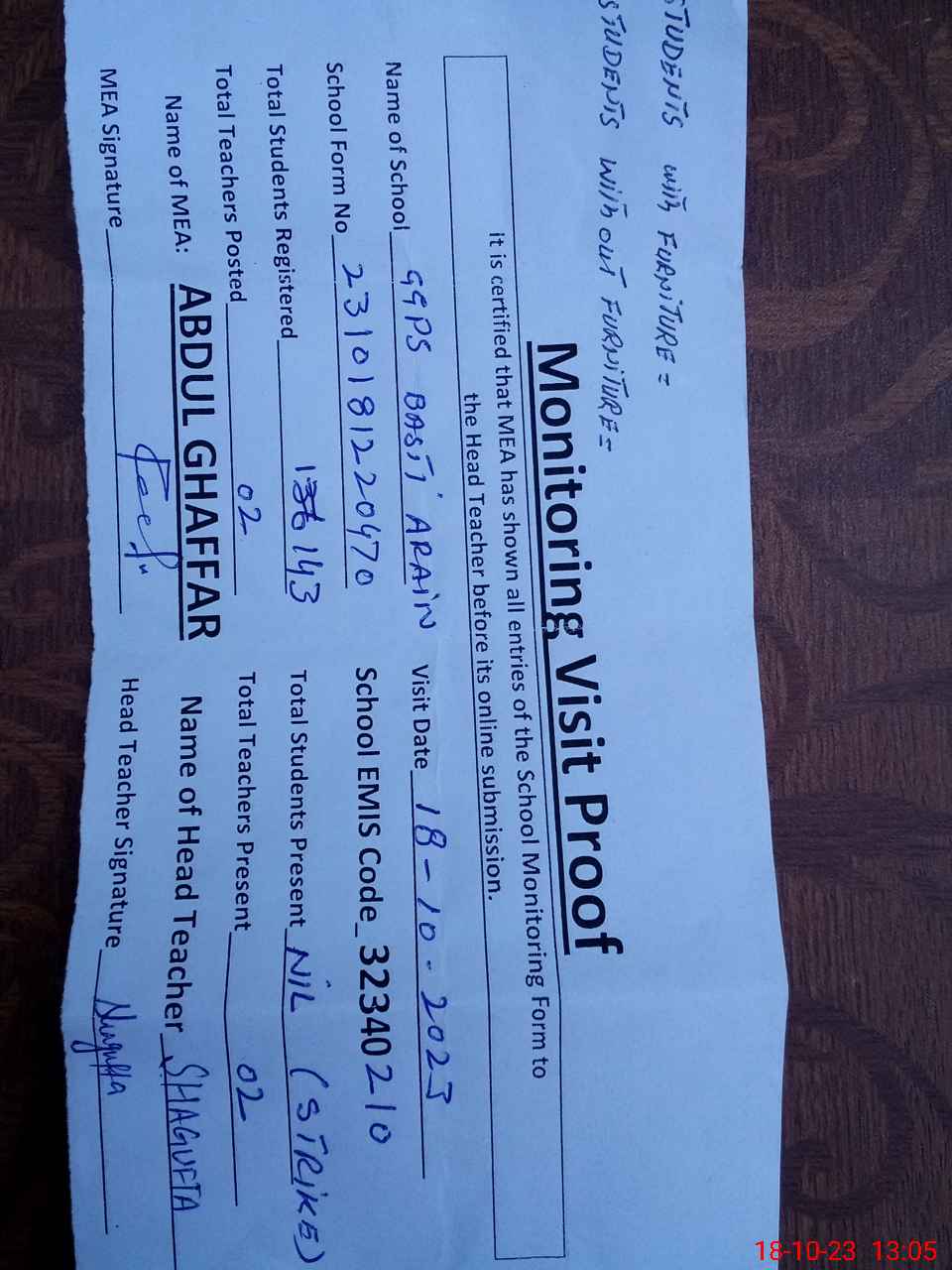 | EMIS Code: 32340210 | Name of School: GGPS BASTI ARAIN | |||