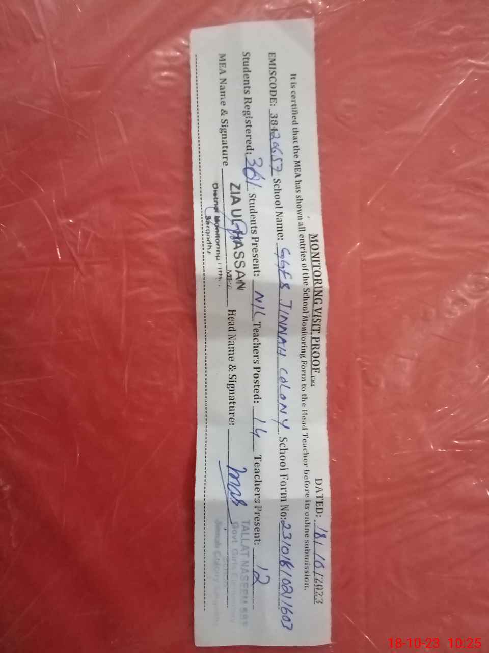 | Certified that this School was Inspected by the Undersigned MEA/DMO Today and the Information Stated Above is as Per Record. | |||||