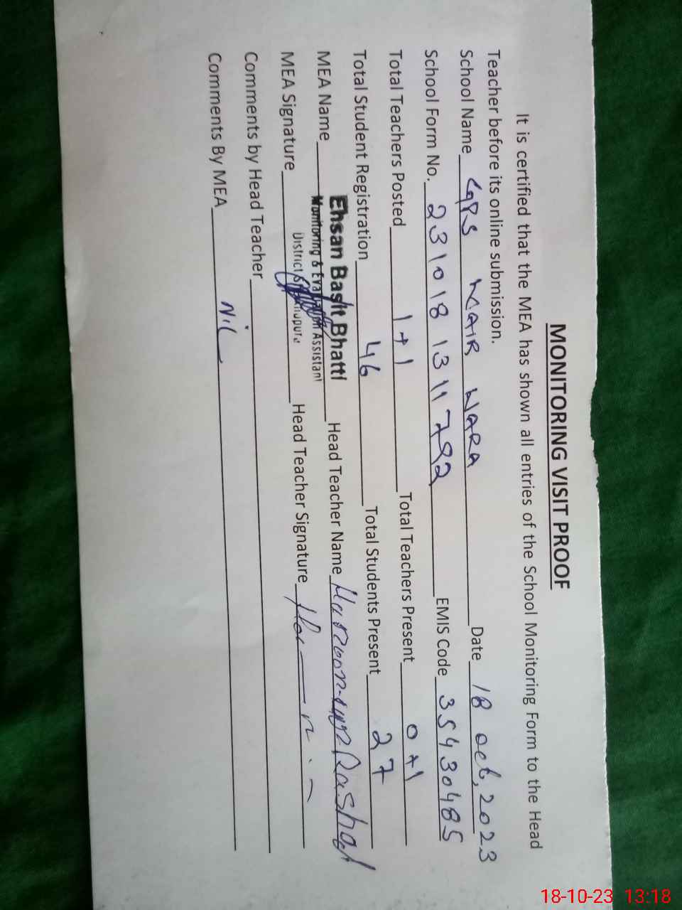 | EMIS Code: 35430485 | Name of School: GPS KAIR WARA | |||