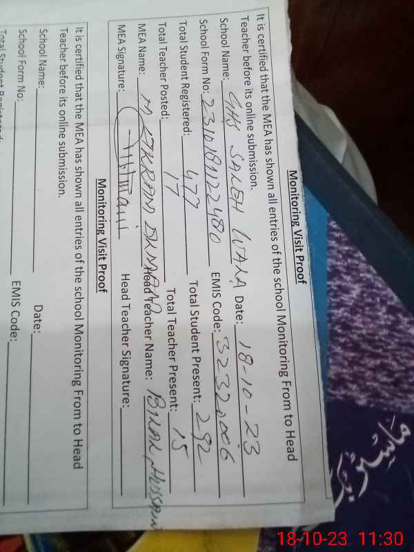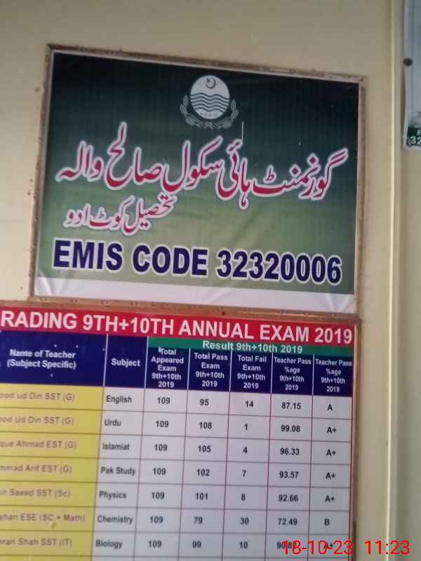 | EMIS Code: 32320006 | Name of School: GHS SALEH WALA | |||
