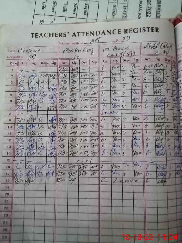 | CNIC | Full Name | Designation | R/C | Absence During Last Calender Month |