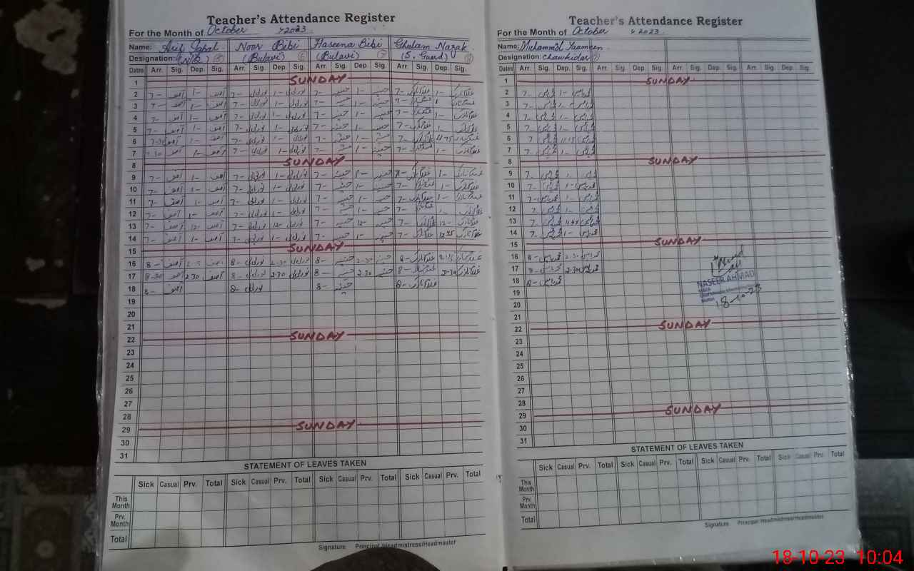 | Attendance Register | Head Teacher | MEA with School | Visit Proof |