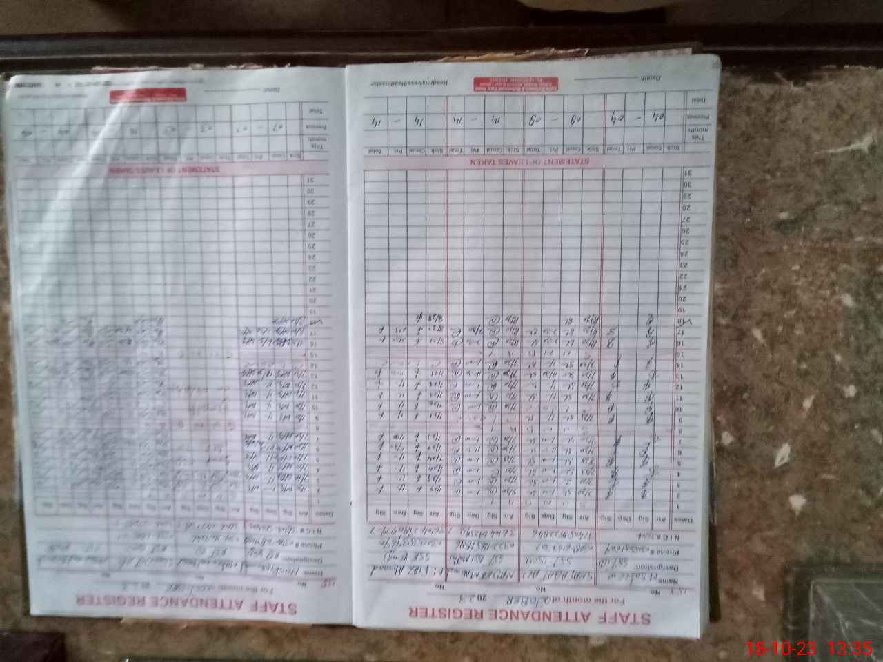 | CNIC | Full Name | Designation | R/C | Absence During Last Calender Month |