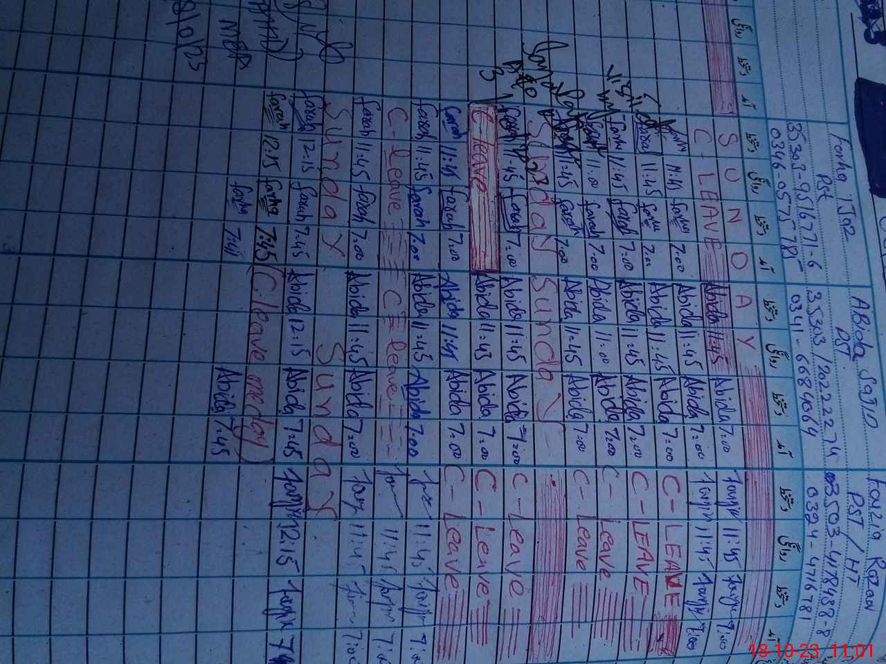 | Leave | Duty | Absent | Maternity | Medical | Ex- Pak |