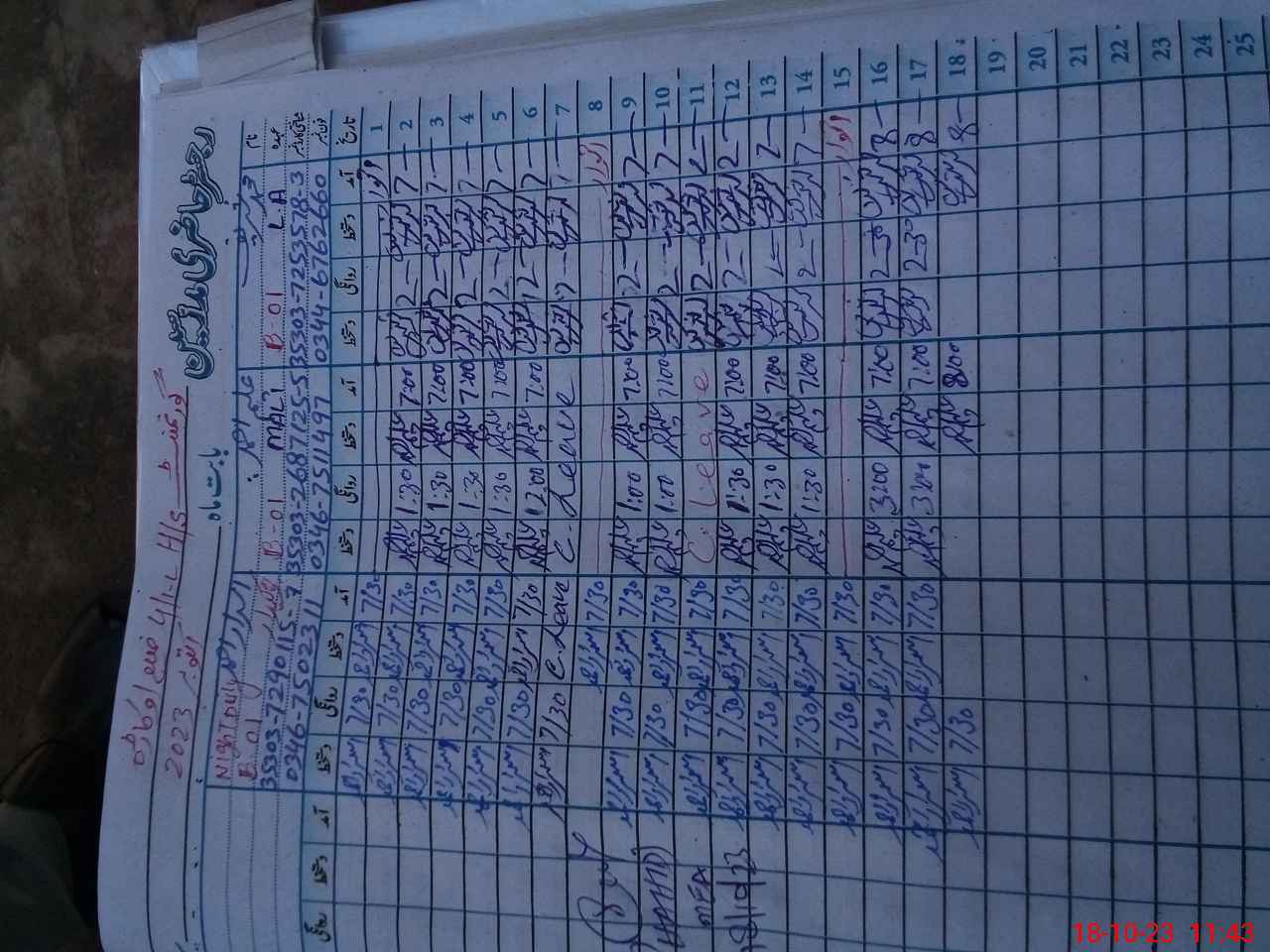 | Leave | Duty | Absent | Maternity | Medical | Ex- Pak |