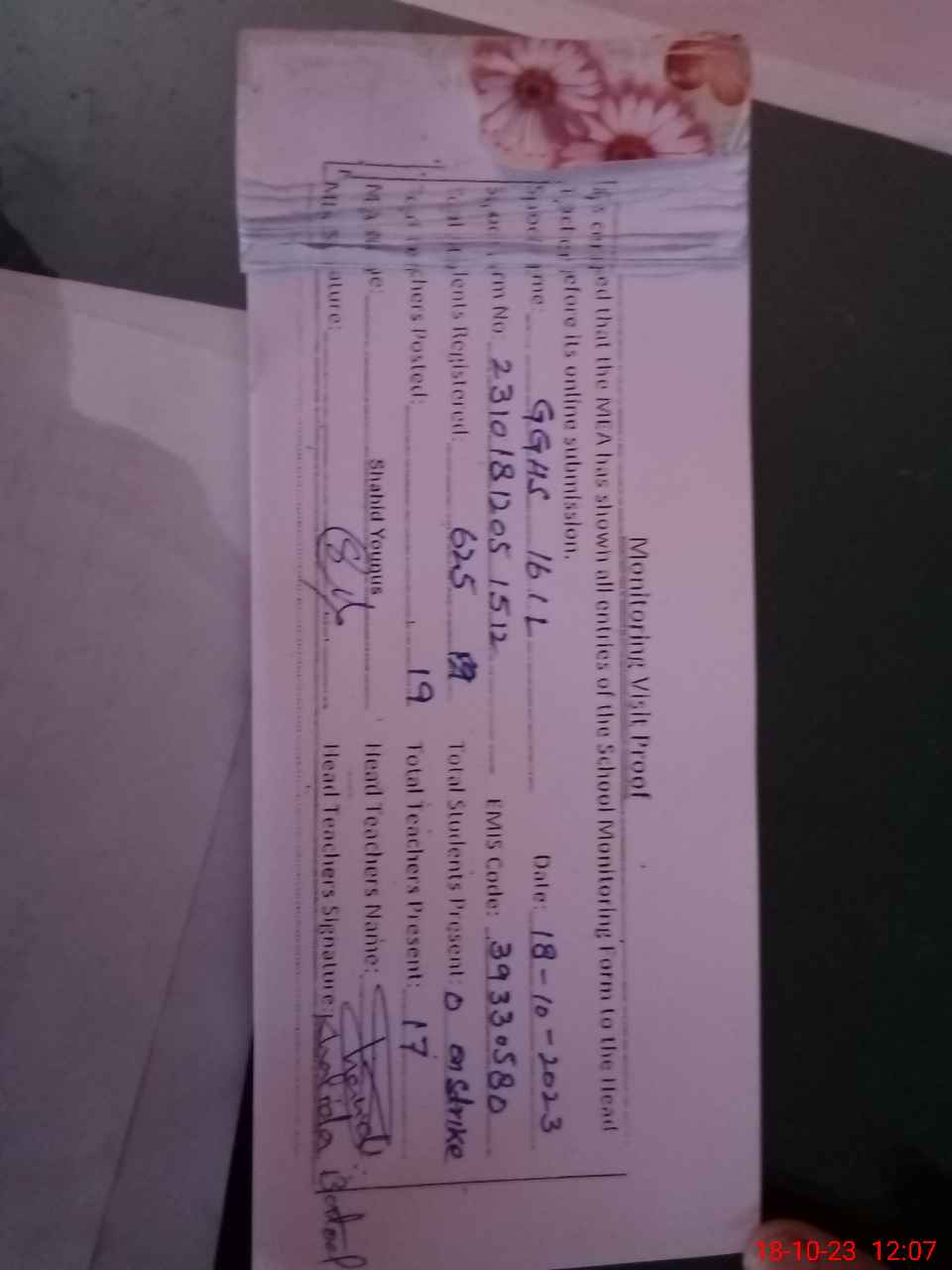 | Certified that this School was Inspected by the Undersigned MEA/DMO Today and the Information Stated Above is as Per Record. | |||||