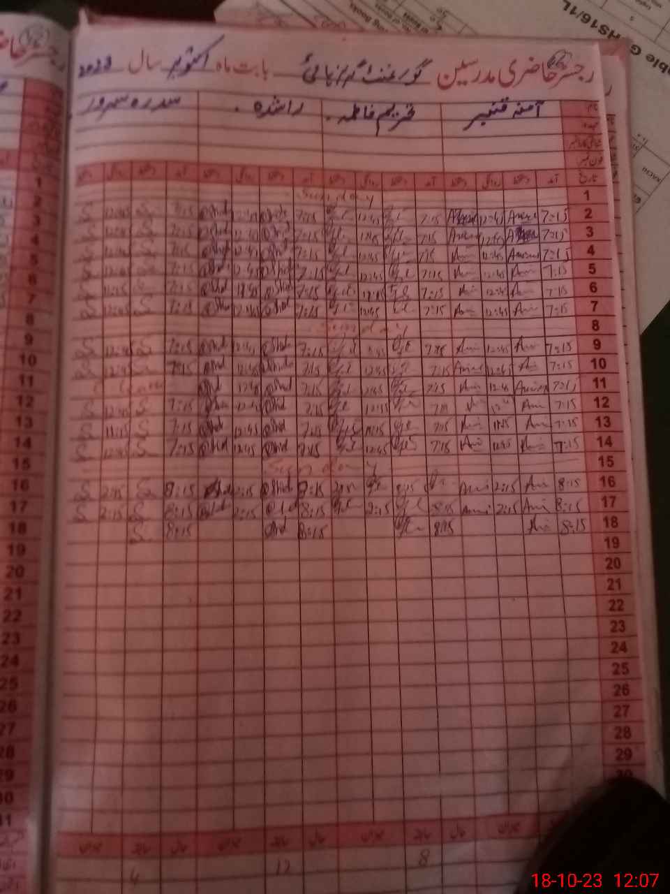 | Name: KH**** Ba**** Designation: (School Headmaster's/Headmistress's) HEAD MISTESS Phone/Cell Number: 03**** |