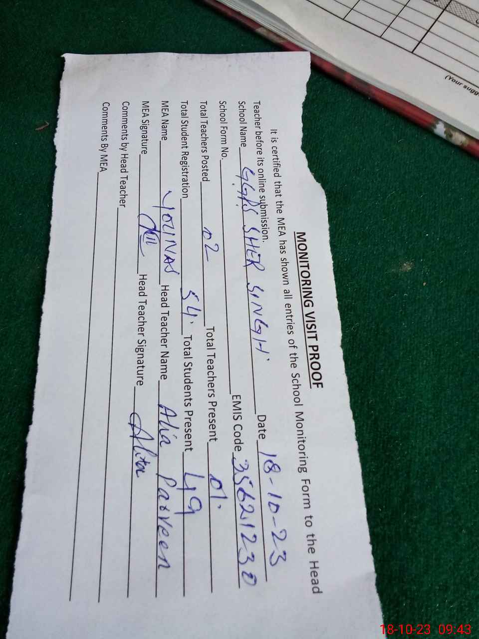 | EMIS Code: 35621230 | Name of School: GGMPS SHER SING WALA | |||