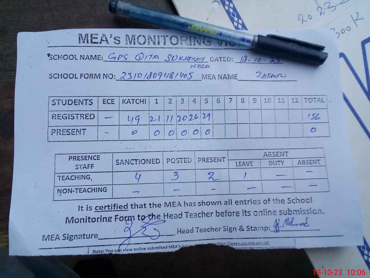 | EMIS Code: 36410656 | Name of School: GPS QITTA SUKHALAY WALA | |||