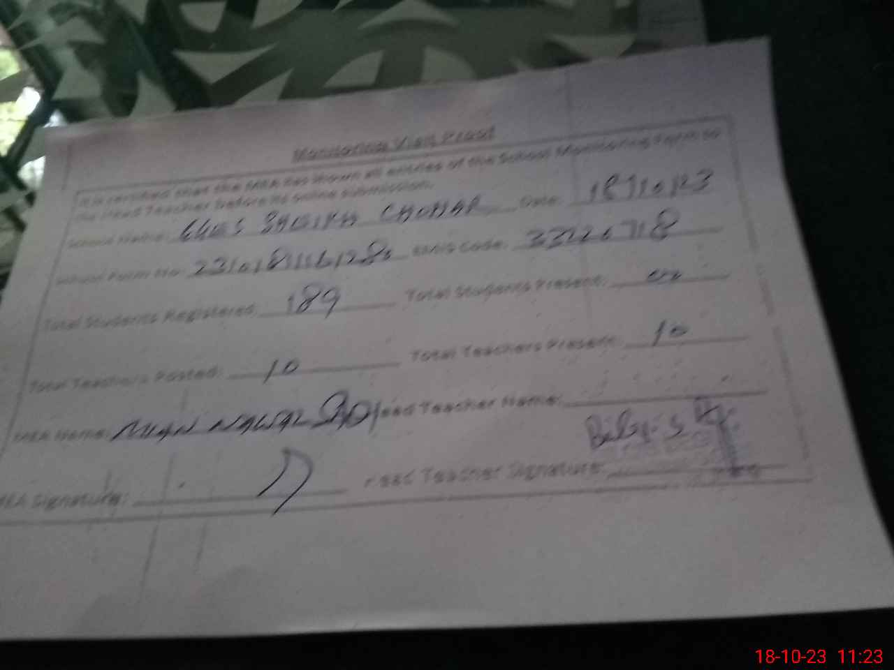 | EMIS Code: 33220718 | Name of School: GGES SHAIKH CHOHAR | |||