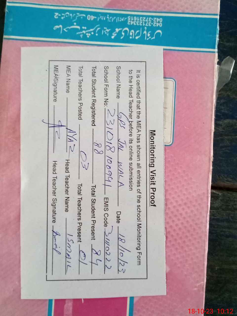 | EMIS Code: 31110222 | Name of School: GPS BANGLA JAL WALA | |||