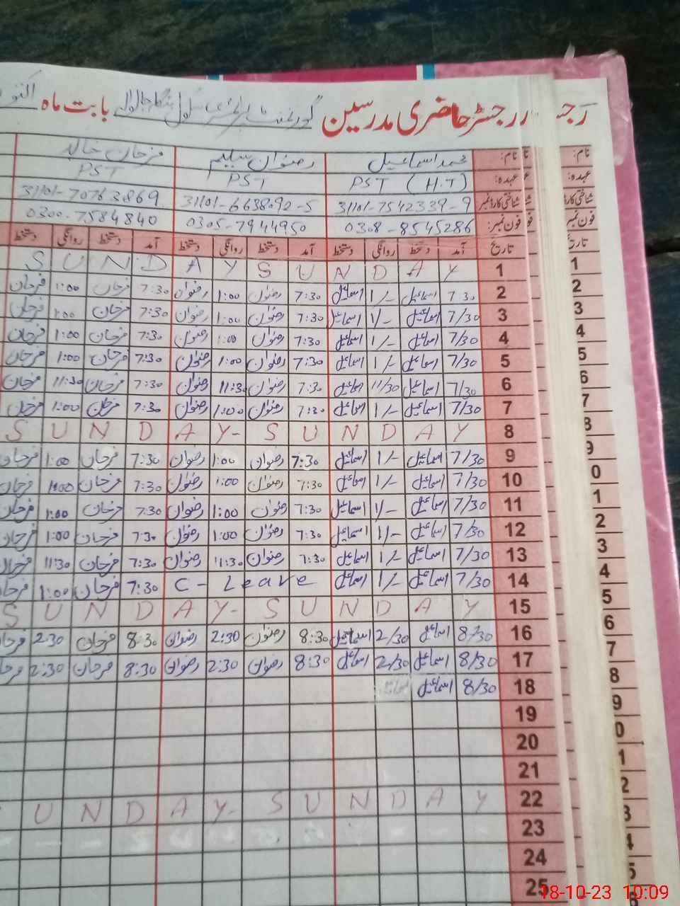| Name: MU**** IS**** Designation: (School Headmaster's/Headmistress's) PST Phone/Cell Number: 03**** |