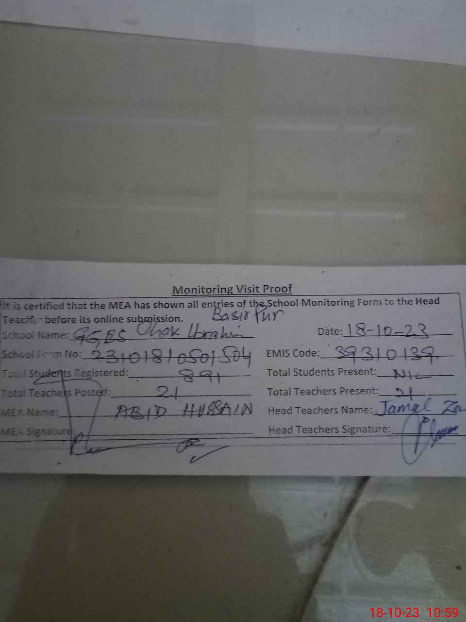 | EMIS Code: 39310139 | Name of School: GGES CHAK IBRAHIM BASIR PUR | |||