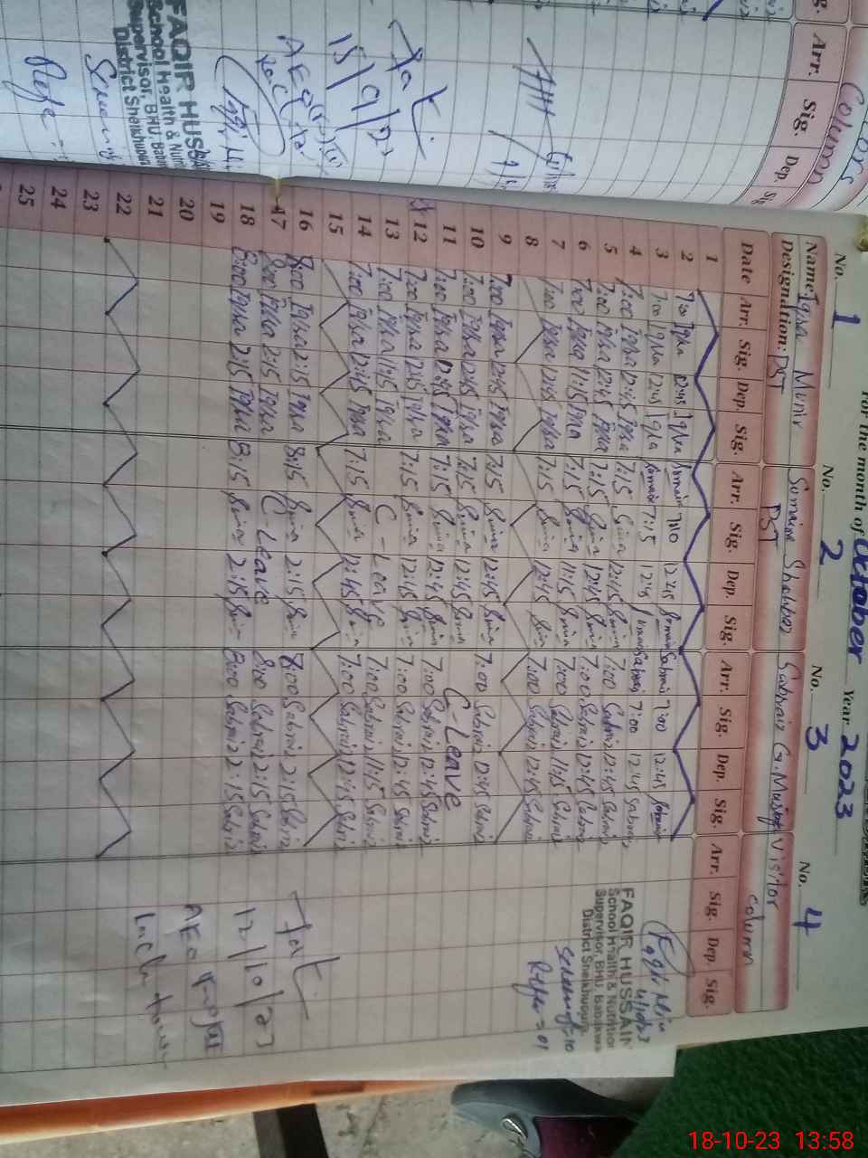 | CNIC | Full Name | Designation | R/C | Absence during last cal. month |