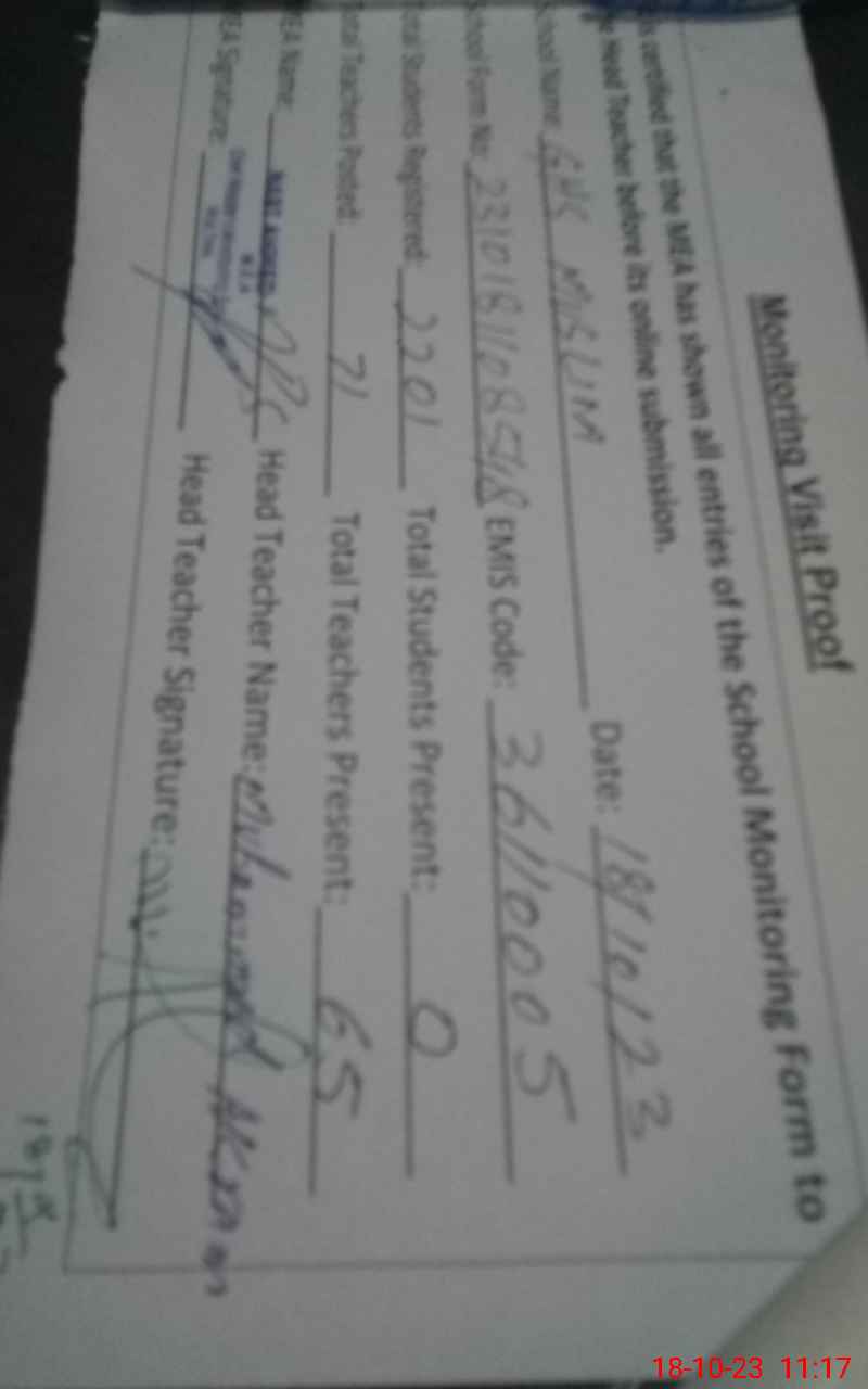 | EMIS Code: 36110005 | Name of School: GHS MUSLIM PUL MOJ DARIYA OPP. SPORTS GROUND MULTAN | |||