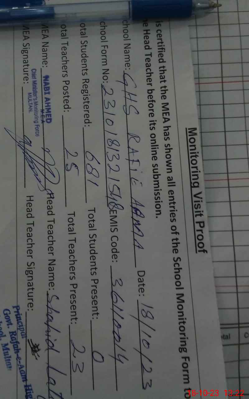 | EMIS Code: 36110014 | Name of School: GHS RAFAH-E-AAMA TAREEN ROAD BAGH LANGA KHAN, MULTAN | |||