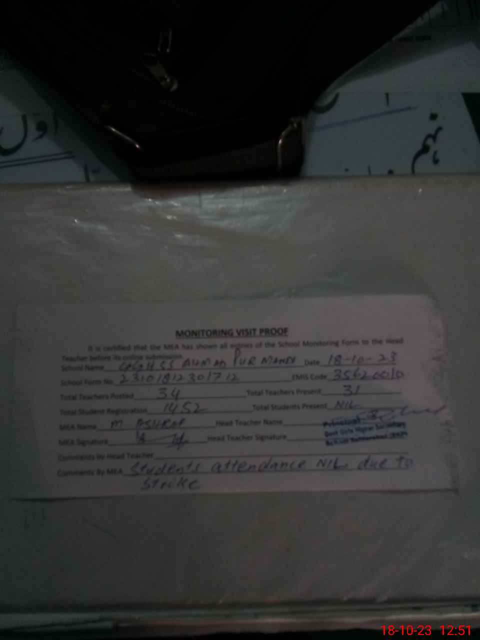 | Attendance Register | Head Teacher | MEA with School | Visit Proof |