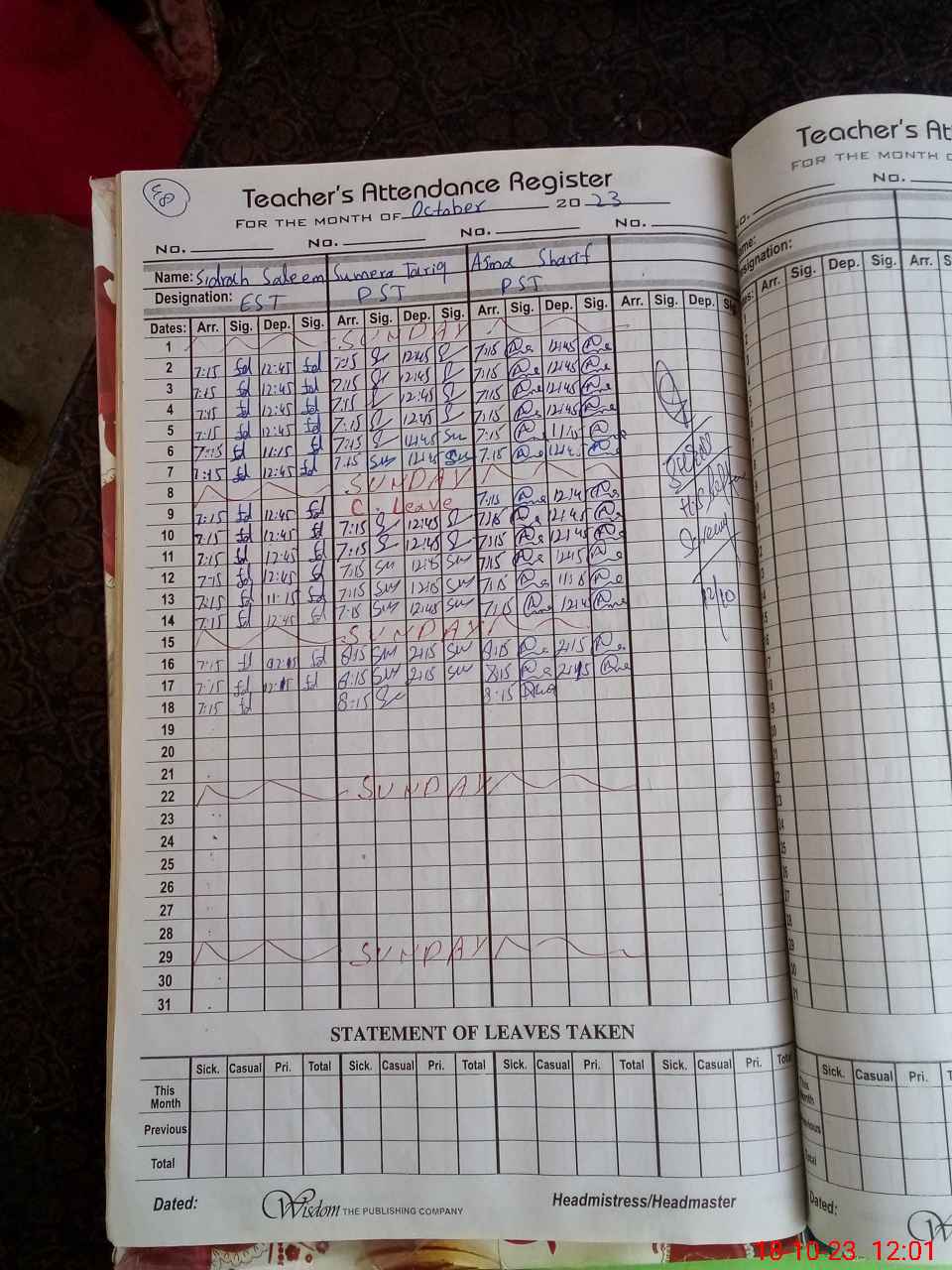 | Name: Si**** Sa**** Designation: (School Headmaster's/Headmistress's) EST Phone/Cell Number: 03**** |