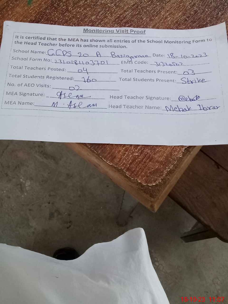 | EMIS Code: 31320502 | Name of School: GGPS 20/A BAAZI GARAAN | |||