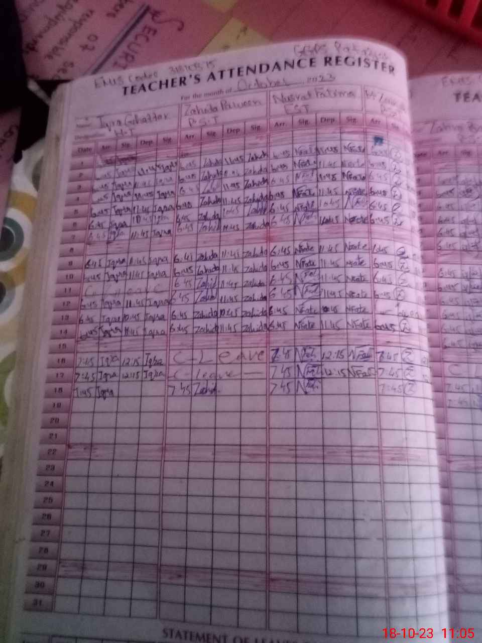 | Leave | Duty | Absent | Maternity | Medical | Ex- Pak |