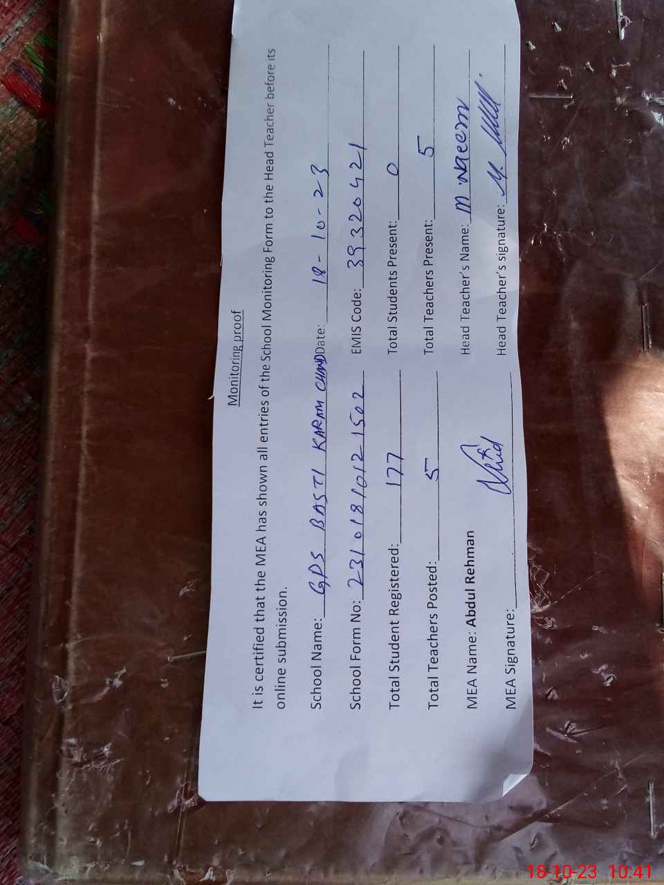 | EMIS Code: 39320421 | Name of School: GPS BASTI KARAM CHAND | |||