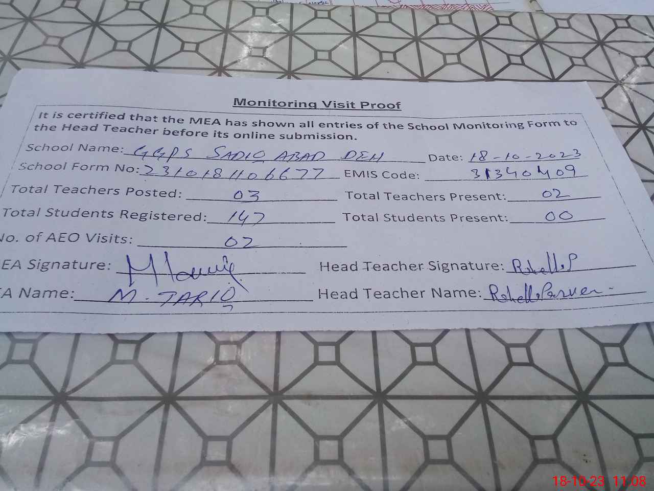 | EMIS Code: 31340409 | Name of School: GGPS SADIQ ABAD DEH | |||