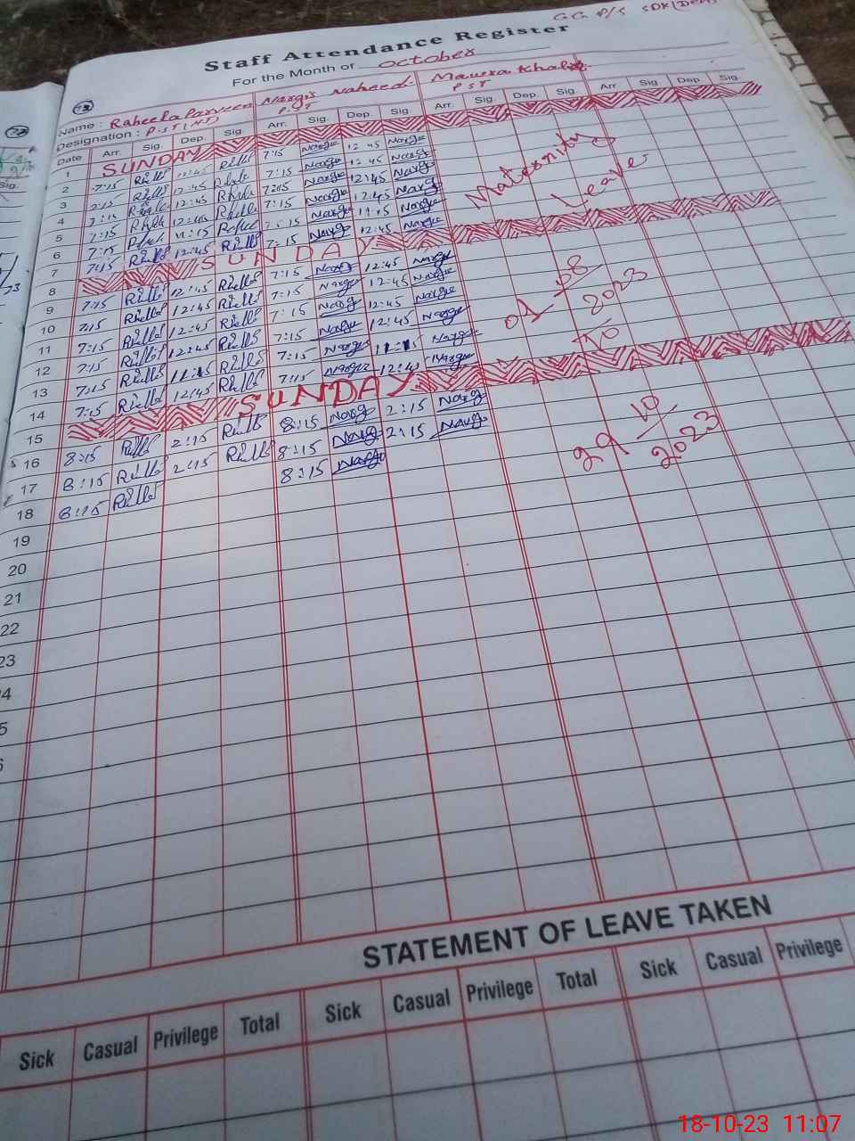 | 33**** | Ma**** Kh**** | 1 | 30 | 0 | 0 | 30 | 0 | 0 | 0 | 0 | 0 | Maternity | |