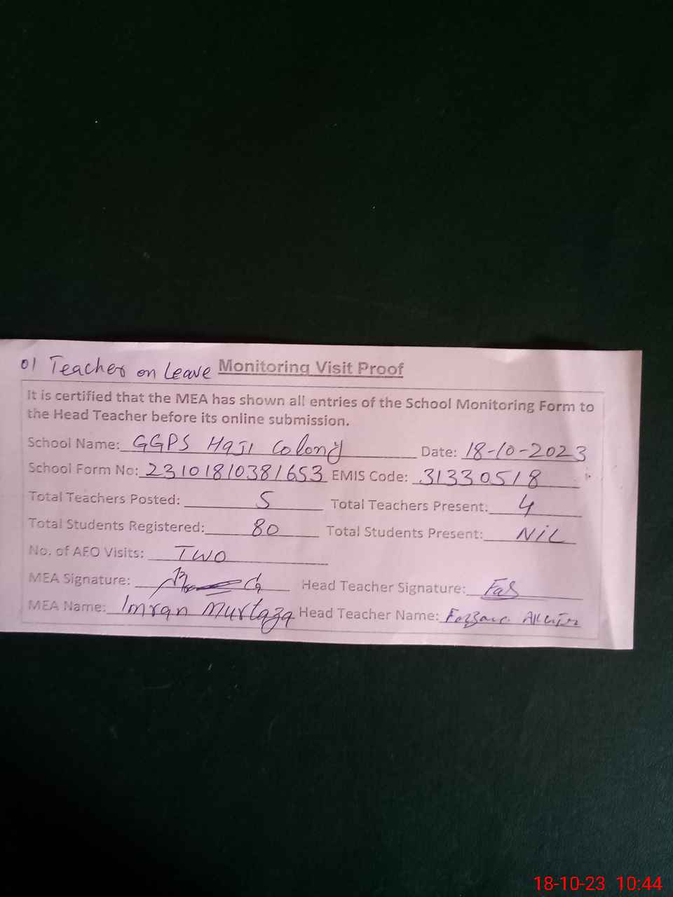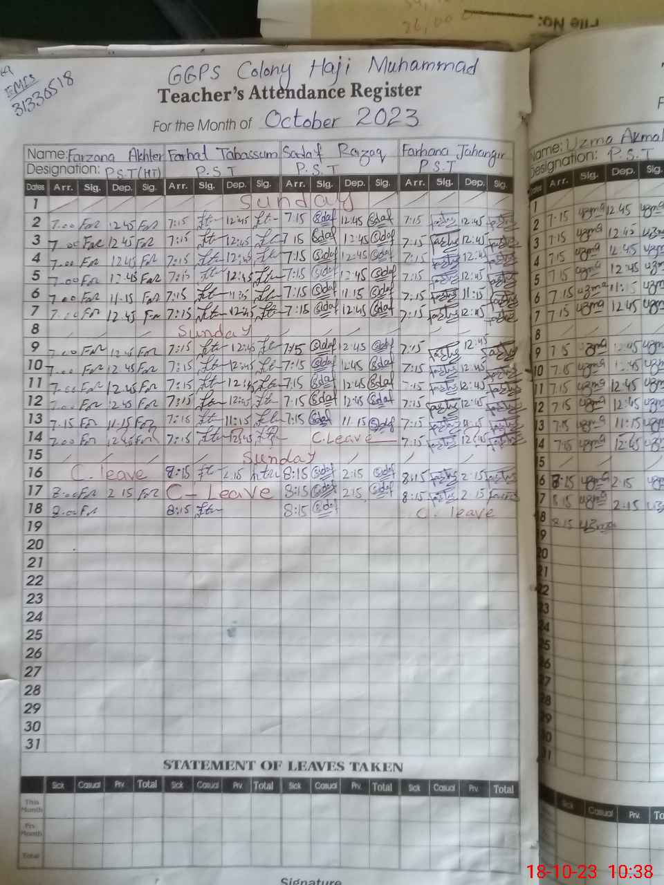 | Name: Uz**** Ak**** Designation: (School Headmaster's/Headmistress's) PST Phone/Cell Number: 03**** |