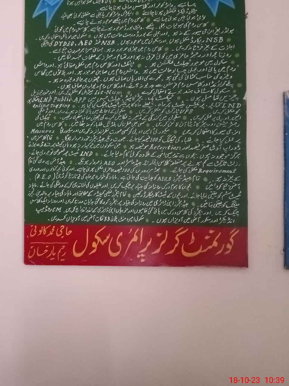 | EMIS Code: 31330518 | Name of School: GGPS HAJI COLONY | |||