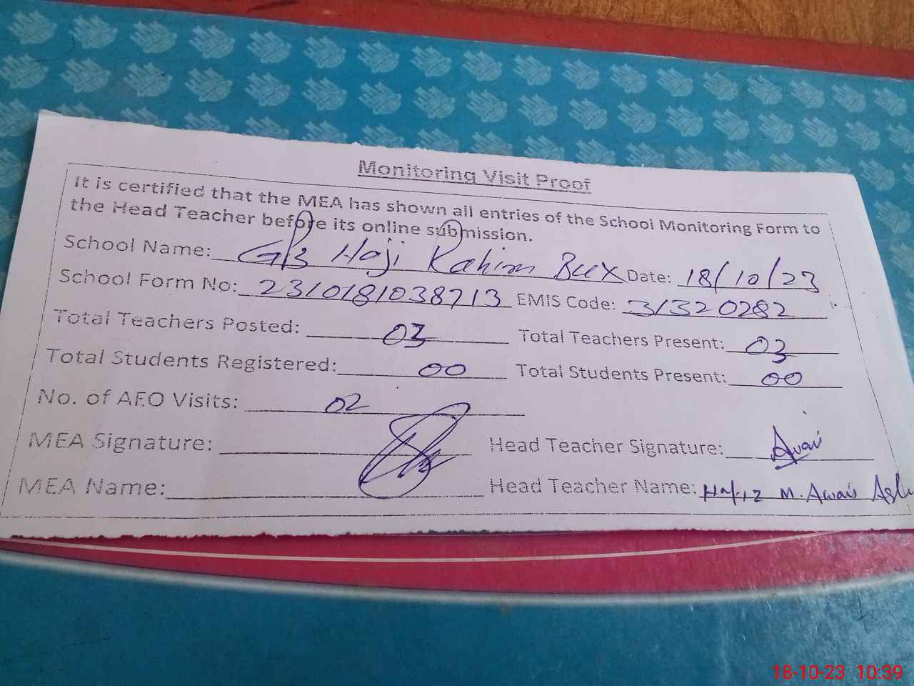 | EMIS Code: 31320282 | Name of School: GPS HAJI RAHIM BAKHASH AWAN | |||