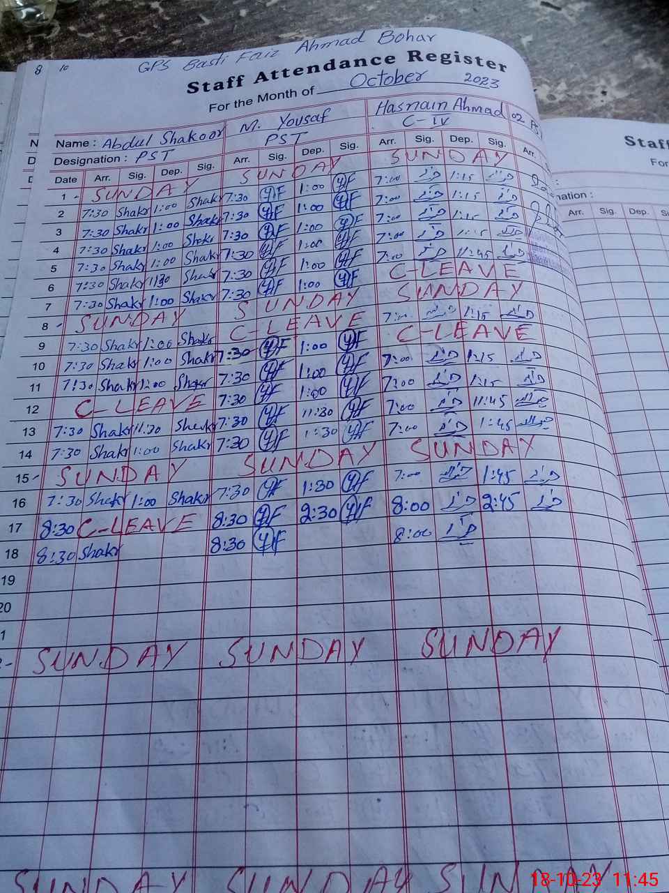 | CNIC | Full Name | Designation | R/C | Absence During Last Calender Month |