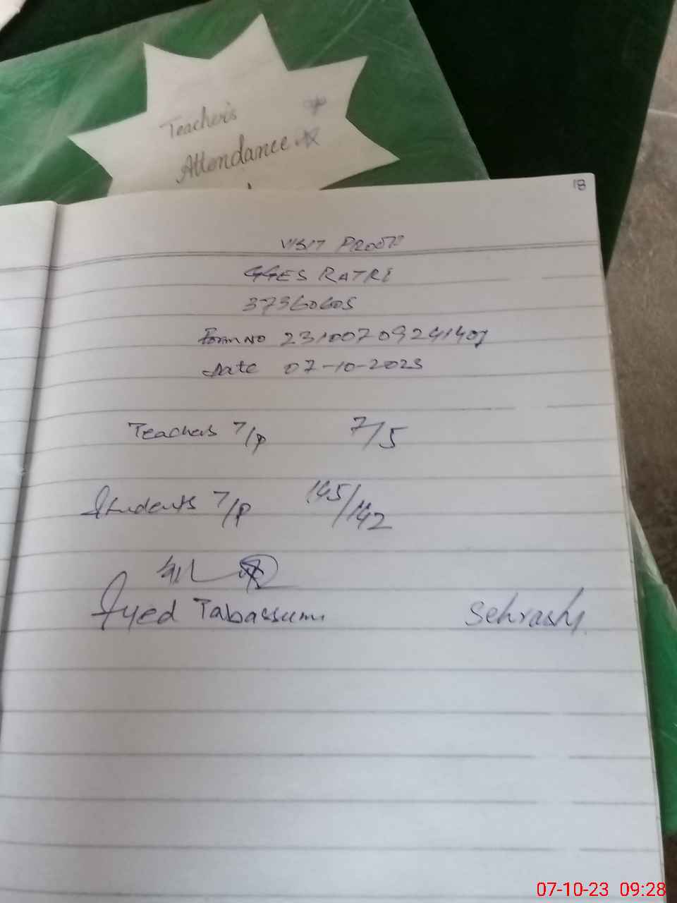 | Total no. of Classrooms: 7 No. of Classrooms Used for Teaching: 6 No. of Classrooms Storing Old Furniture, FTBs, etc: 0Comments if Any: 0 |