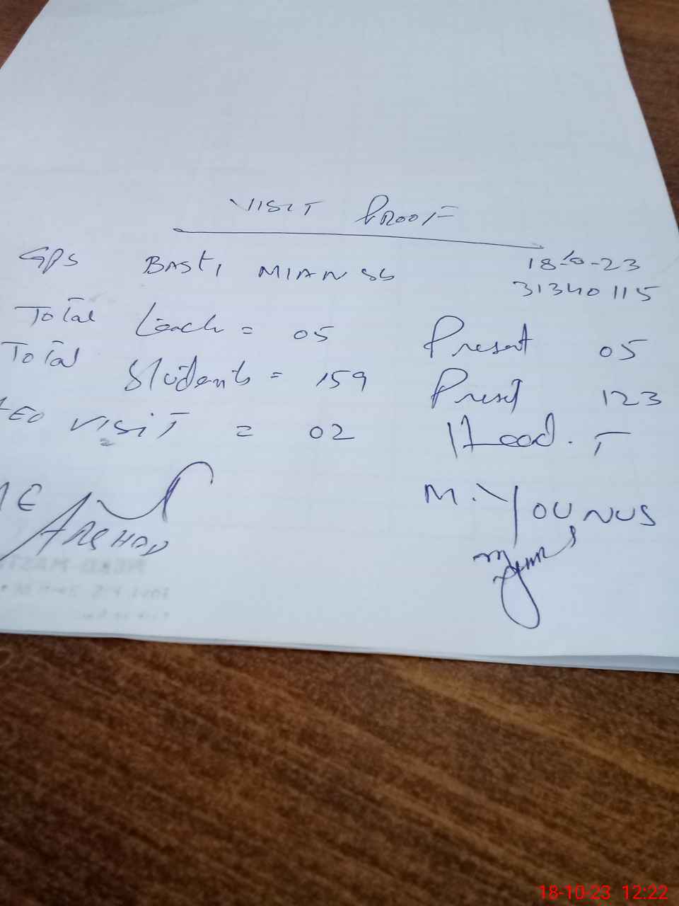 | Certified that this School was Inspected by the Undersigned MEA/DMO Today and the Information Stated Above is as Per Record. | |||||