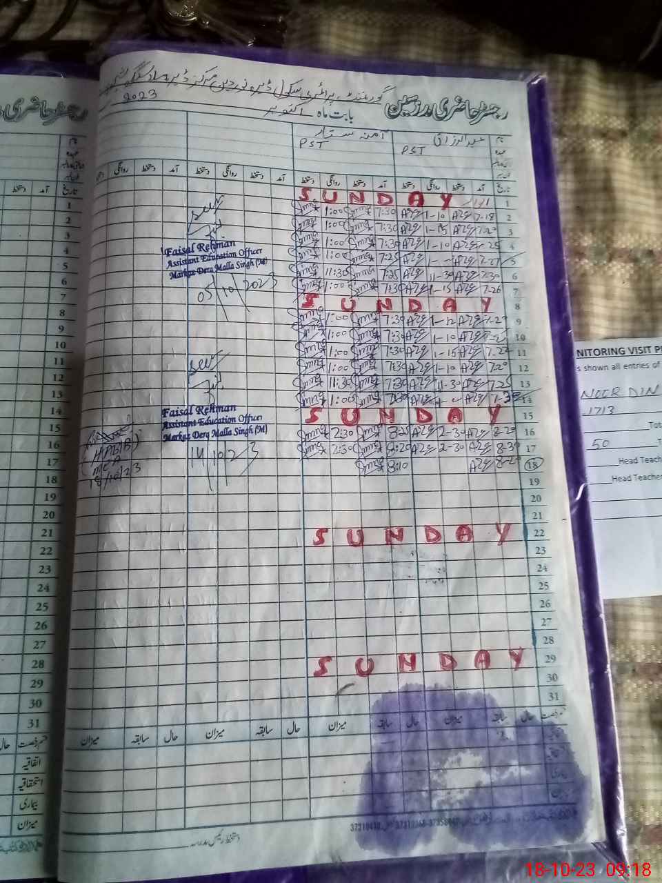 | Name: AB**** RA**** Designation: (School Headmaster's/Headmistress's) PST Phone/Cell Number: 03**** |