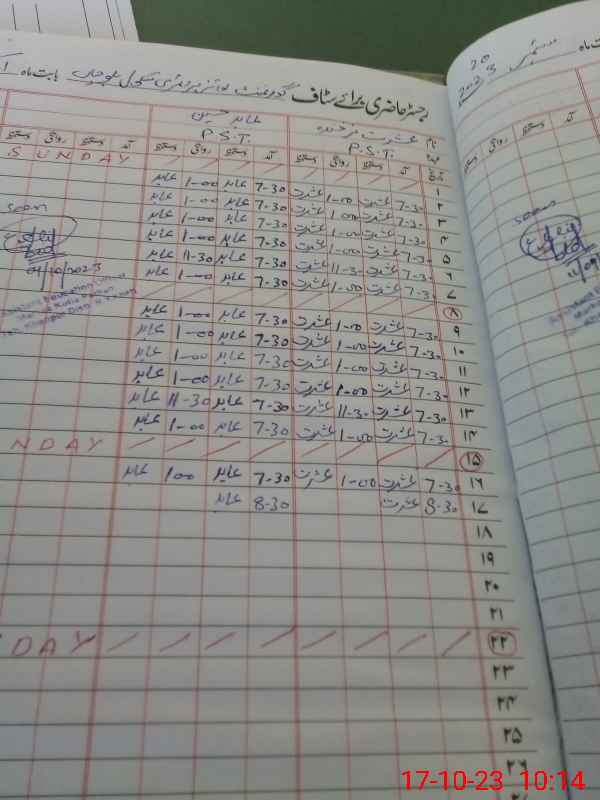 | CNIC | Full Name | Designation | R/C | Absence During Last Calender Month |