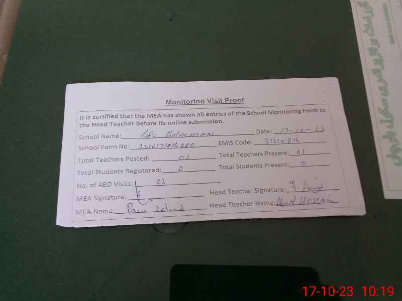 | EMIS Code: 31310814 | Name of School: GPS BALOCHAN | |||