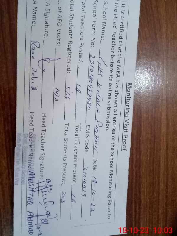 | EMIS Code: 31310019 | Name of School: GHS KOTLA PATHAN | |||