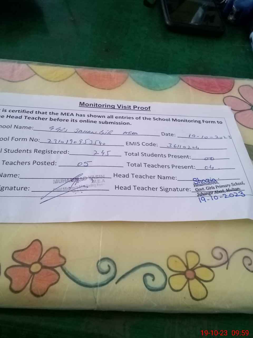 | EMIS Code: 36110204 | Name of School: GGPS JAHANGIR ABAD MULTAN | |||