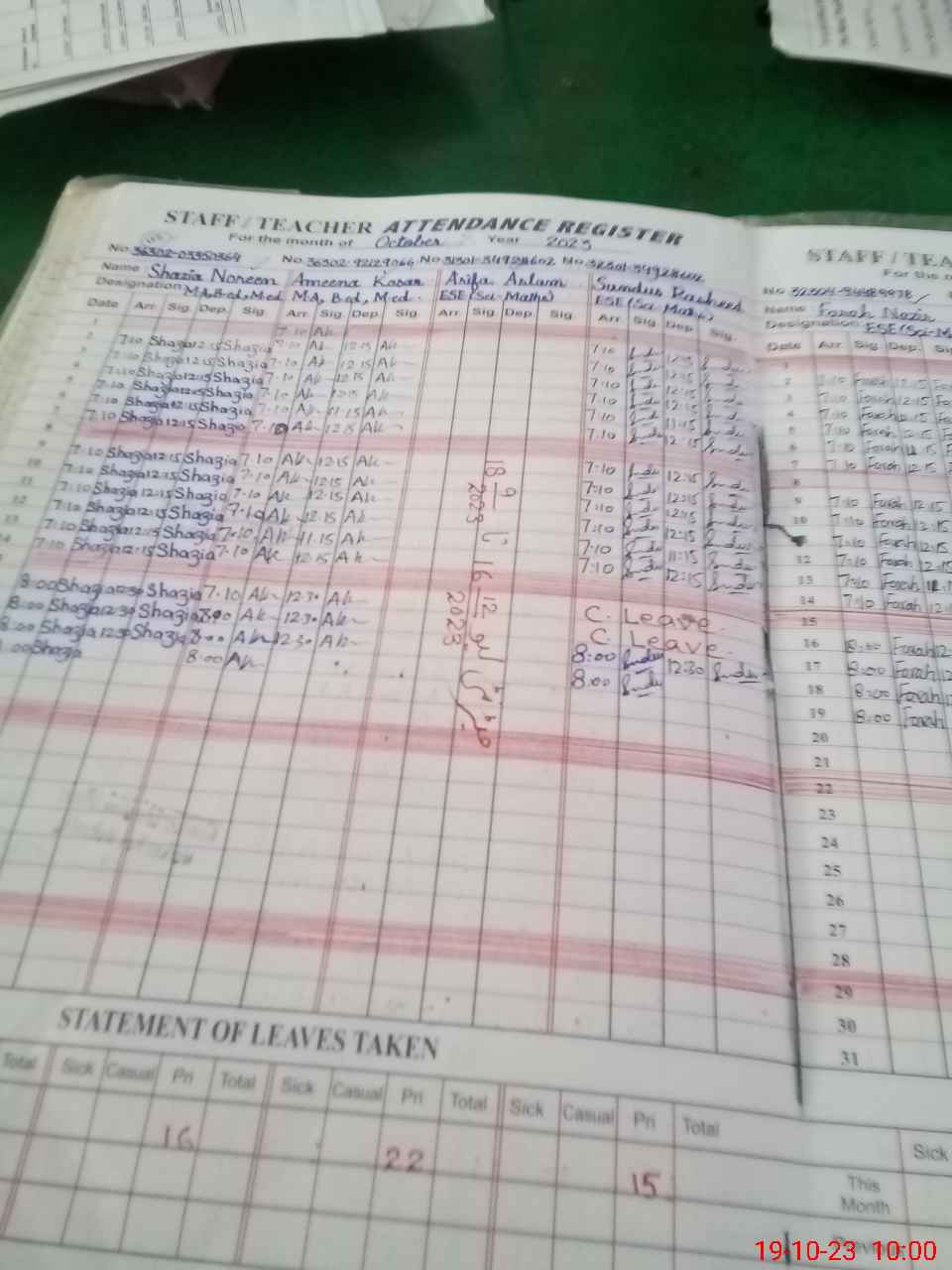 | Leave | Duty | Absent | Maternity | Medical | Ex- Pak |