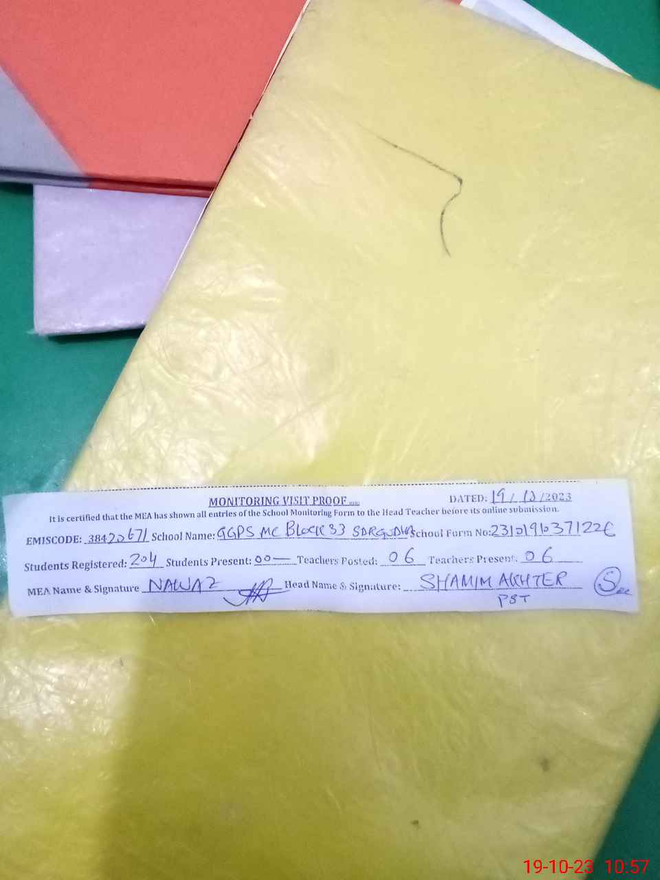 | EMIS Code: 38420671 | Name of School: GGPS MC BLOCK NO.33 SARGODHA | |||