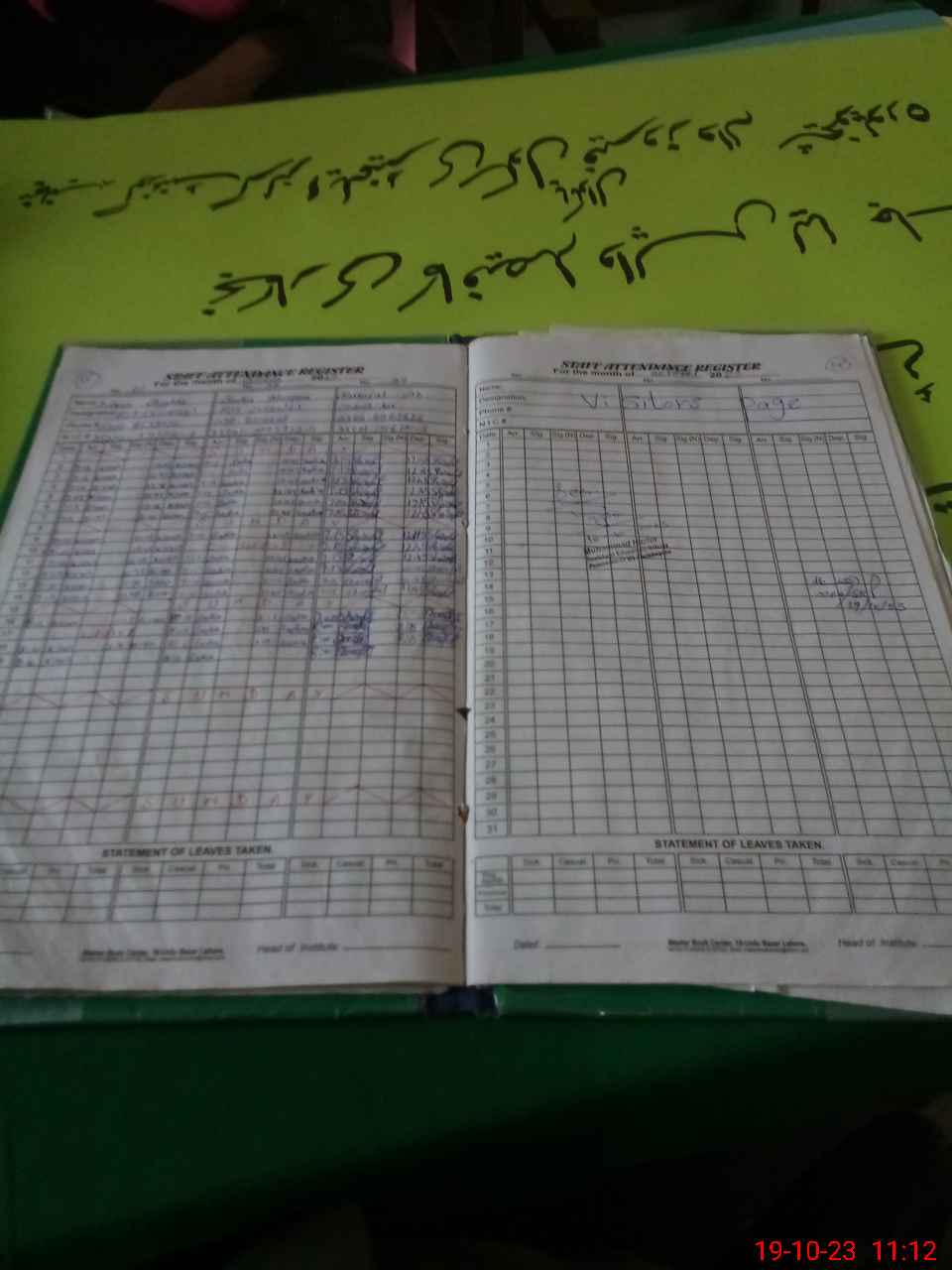 | CNIC | Full Name | Designation | R/C | Absence During Last Calender Month |