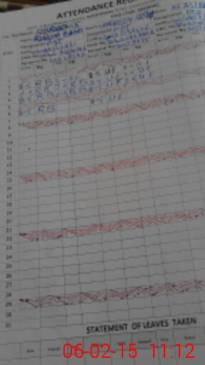 | CNIC | Full Name | Designation | R/C | Absence During Last Calender Month |