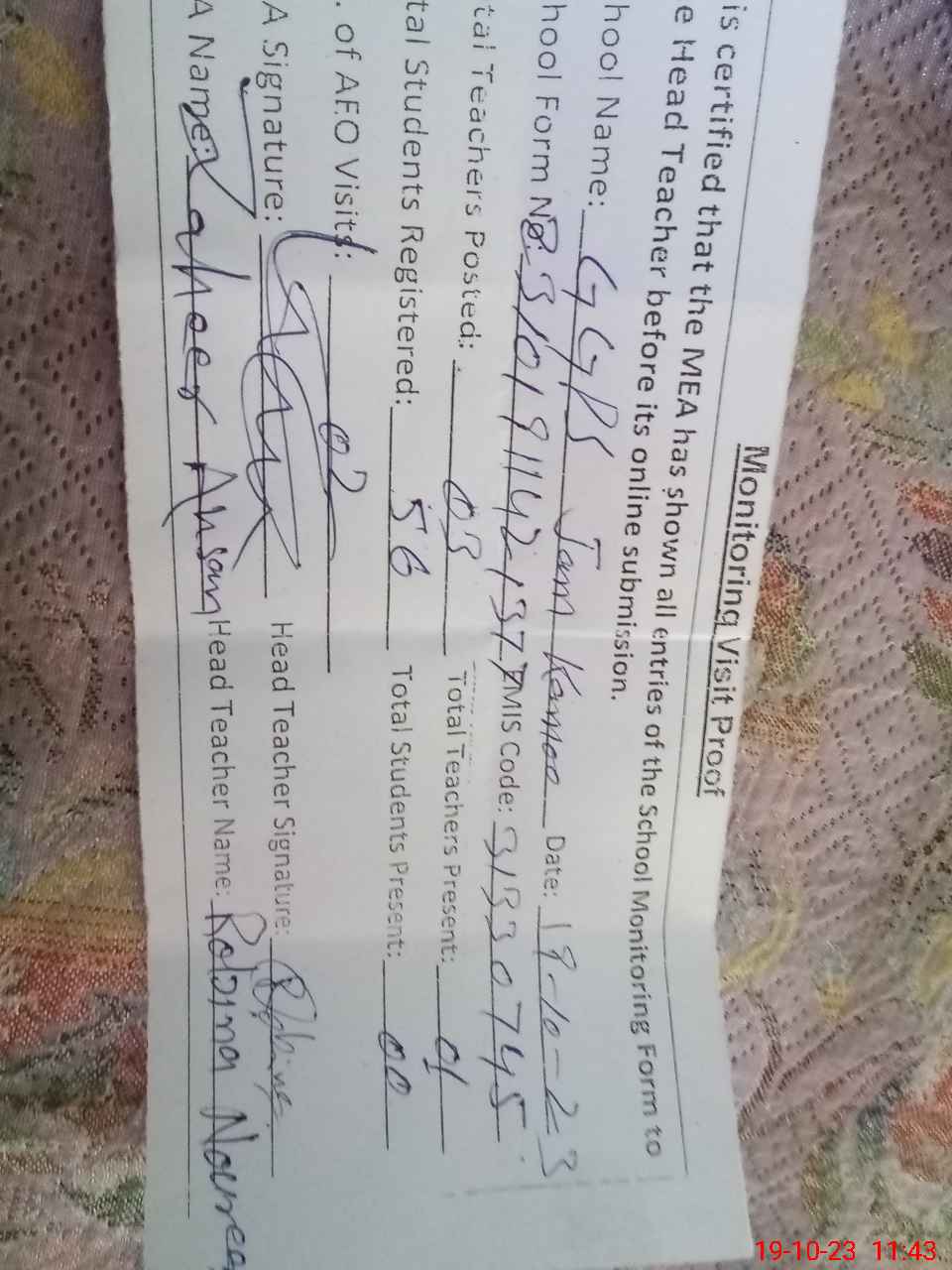 | EMIS Code: 31330745 | Name of School: GGPS BASTI JAM KAMOO | |||