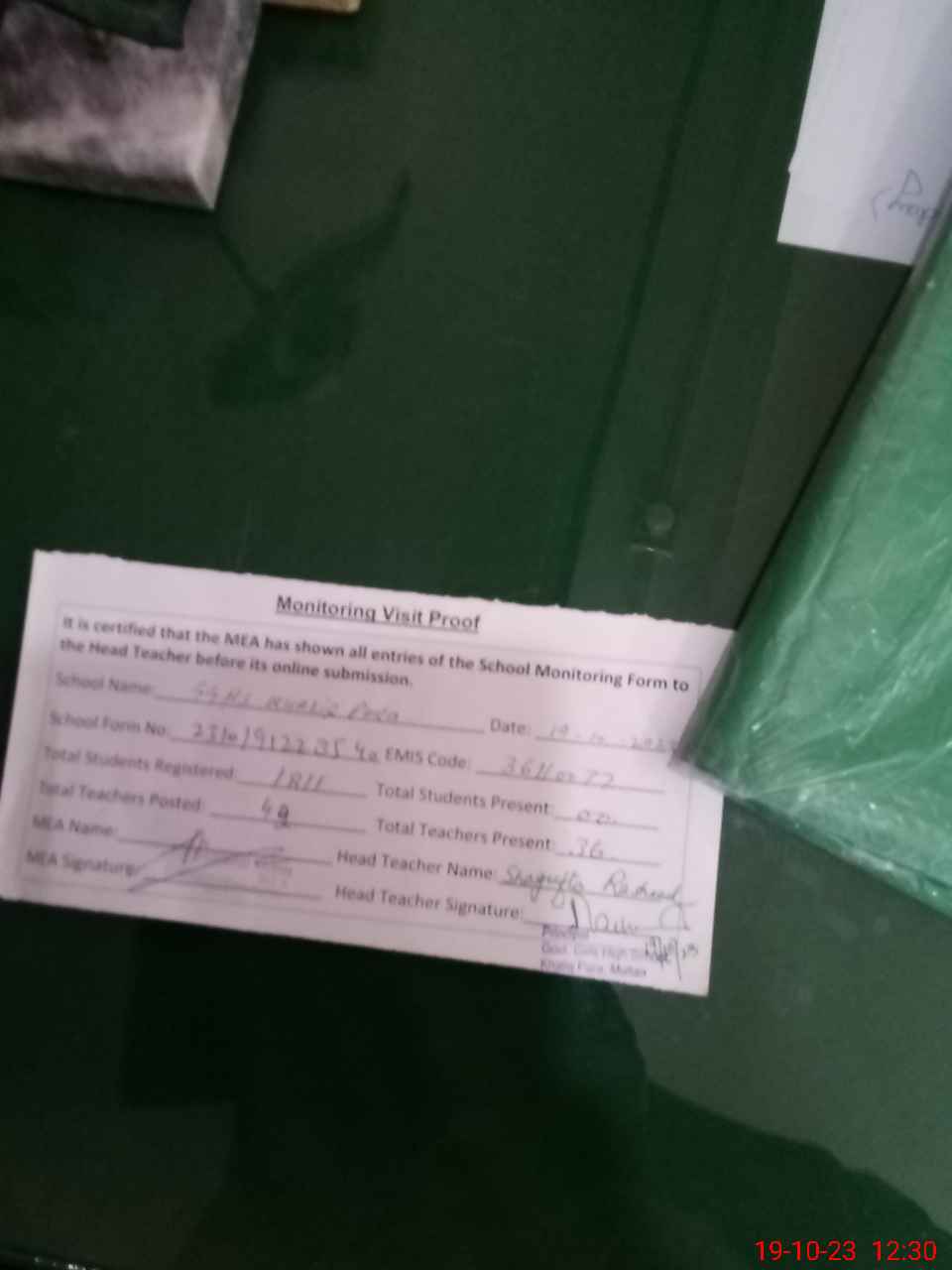 | Certified that this School was Inspected by the Undersigned MEA/DMO Today and the Information Stated Above is as Per Record. | |||||