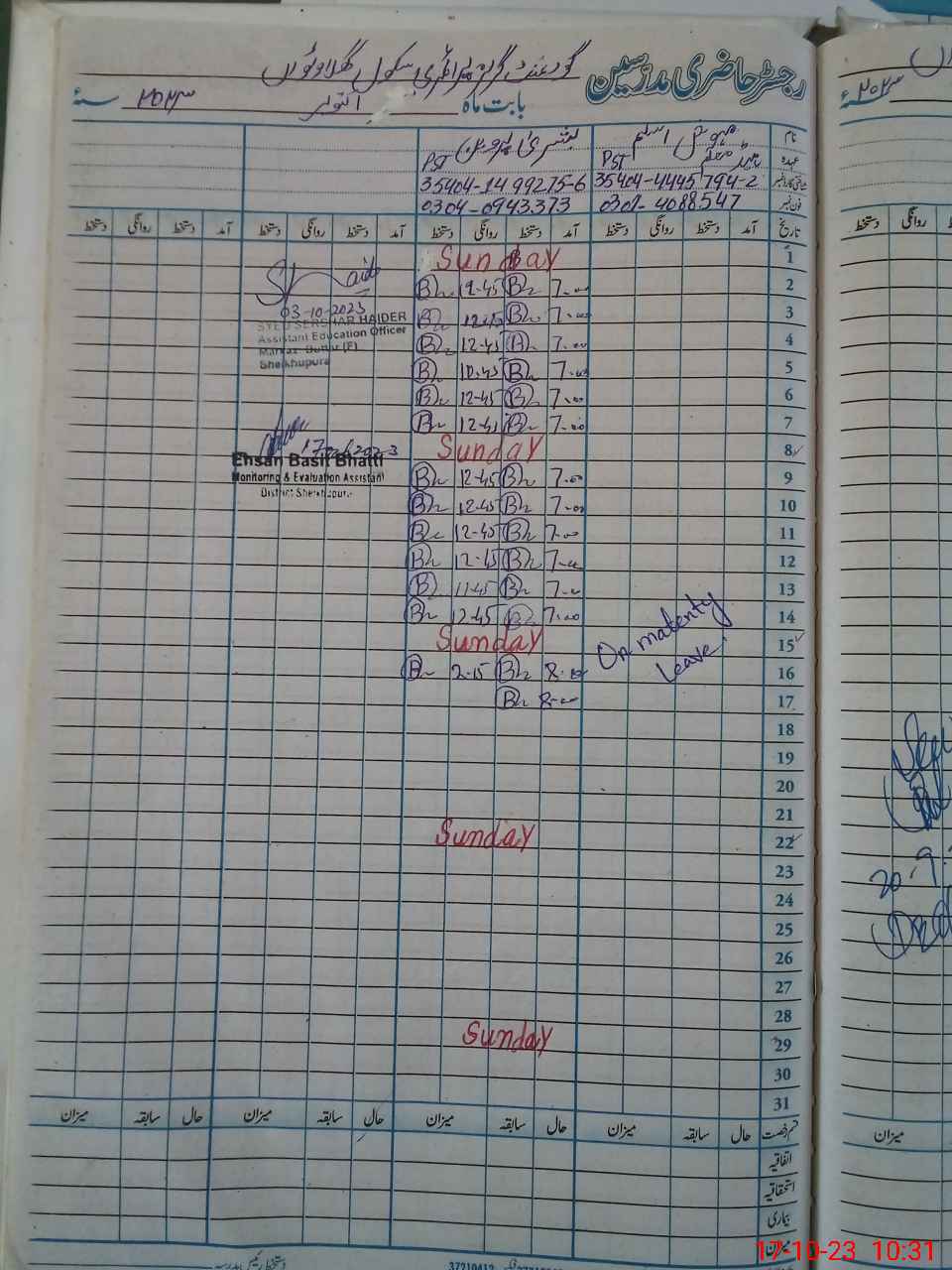 | Name: Ma**** As**** Designation: (School Headmaster's/Headmistress's) PST Phone/Cell Number: 03**** |